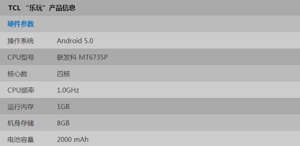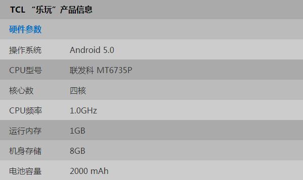 在评测之前,还是先来看看TCL乐玩手机的基本配置信息。
