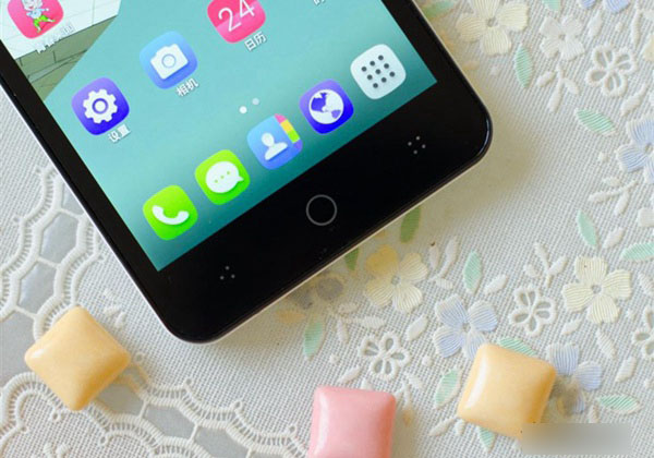 屏幕上方为条形镂空设计的电话听筒,左右两侧分别为光线距离传感器以及800万像素的前置摄像头。比较有特点的是,摄像头右侧还有一枚前置 LED 柔光灯,可以在自拍时提供更明亮柔和的光线