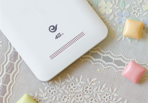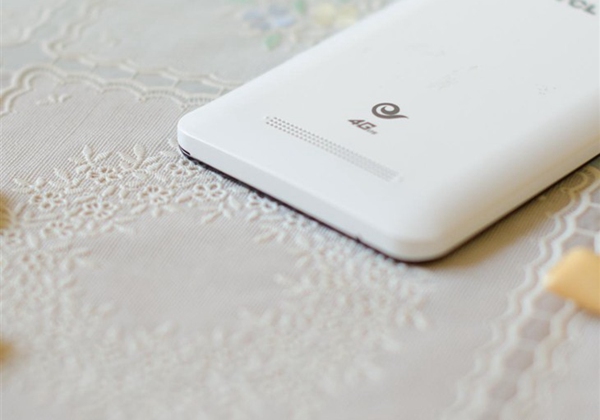 背部下方为天翼 4G的 Logo 与三排条形扬声器扩音孔,两侧还有突起可防止机身平放在桌面时划伤背部。