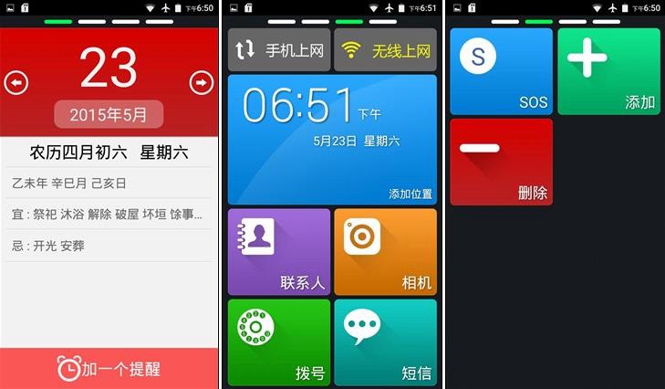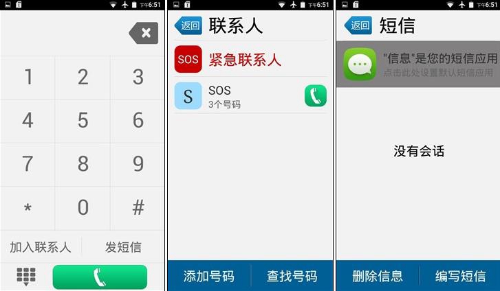 这个桌面模式下,电话、短信、联系人等应用的 UI 和字体也进行了调整和放大,并且内置了一键设置紧急联系人的功能,可在使用者遇到突发情况时使用。