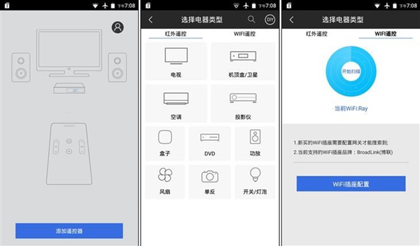 应用方面,它的“遥控精灵”支援多种品牌的电视、空调和机顶盒等家用电器,能够学习并记录功能按键,以后使用手机便能充当家中所有红外线设备的遥控器。同时它也具备“BroadLink”的 WiFi 插座,使用此插座的电器便可通过 WiFi 进行控制,使用范围更加宽广。