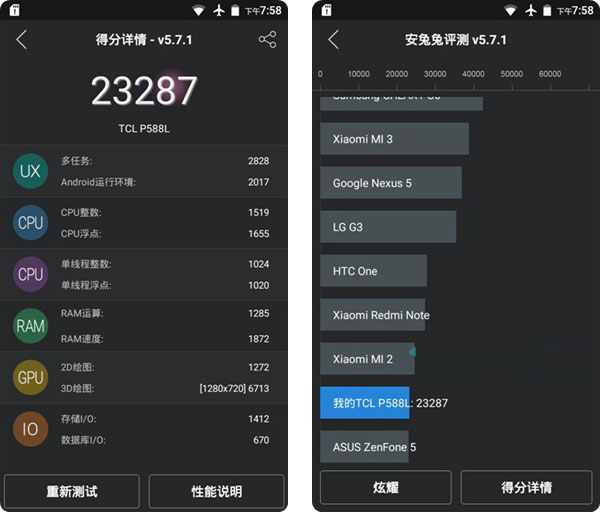 安兔兔的跑分结果能够看出它的得分在23287分,可以说是非常入门,但这并不影响系统整体的流畅度以及应用的开启速度,日常使用不会为你带来困扰。