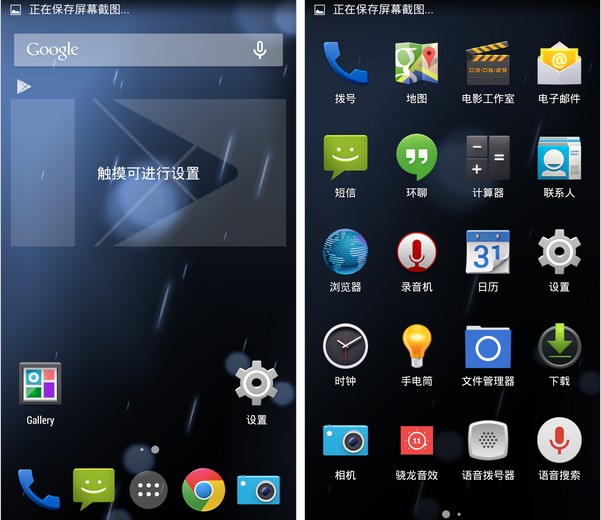 一加手机系统分为两个版本:CM和Color OS,CM定制系统外观和图标接近Android原生风格,解锁后进入桌面,还可以进入二级菜单,如下图所示。