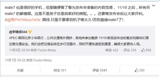 而与此同时,魅族副总裁李楠也在微博上公开表示对自家MX4Pro的自信,同时也不忘调侃了一下华为的Mate7。作为同样在国内拥有超高人气的机型,华为Mate7的价格与网曝MX4Pro的售价还要低200元。而面对综合实力如此强悍的机型,还没发布的MX4Pro究竟有何实力去迎接挑战呢?