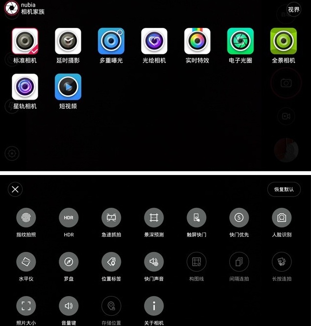 通过上面的对比不难发现,中兴威武3和nubia Z9的拍摄界面有着众多相似之处,而中兴威武3的指纹识别功能也整合进了拍照功能里,通过机身背面的指纹识别区域就能够控制拍照,相对来说更加方便。