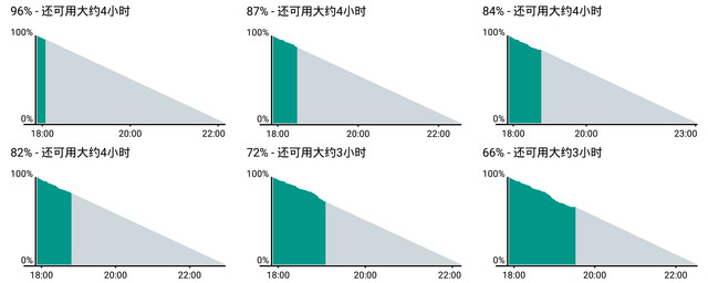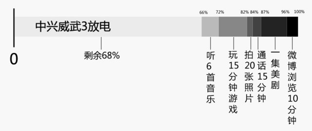 续航测试我们采用比较系统的方法,具体测试流程如下:100电量下联网刷新微博10分钟,看一集美剧,通话15分钟,拍20张照片,玩15分钟游戏最后再听6首歌,每一项之后记录电池剩余电量。下面让我们来看下实测结果。