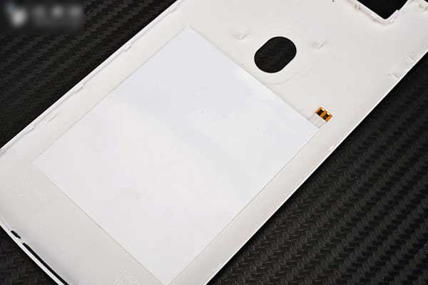 在OPPO N3的后盖内部,我们可以看到一个NFC天线,从这可以看出,OPPO N3支持NFC功能,如下图所示。