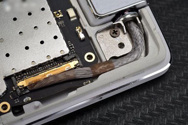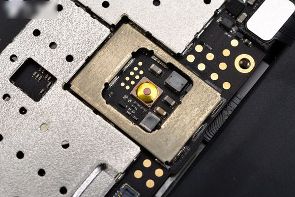另外在指纹识别元件下方PCB上可以看到有一个微动开关,这也是为什么OPPO N3指纹体验需要按压的原因,通过按压才可以开启指纹功能。