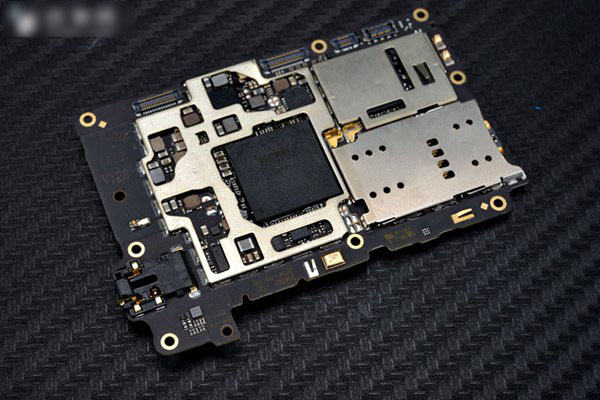 下面我们将OPPO N3主板拆卸下来,一起来看看OPPO N3主板PCB部分,从主板正面可以看到覆盖有屏蔽罩,如下图所示。