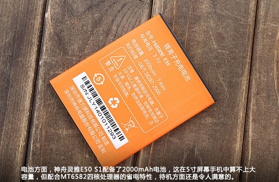 电池方面,神舟E50内置2000mAh容量电池,对于一款采用5英寸大屏的四核处理器来说,2000mAh以上容量电池也很比较必要。该机搭载了较为省电的四核处理器,整机具备较好的续航表现。