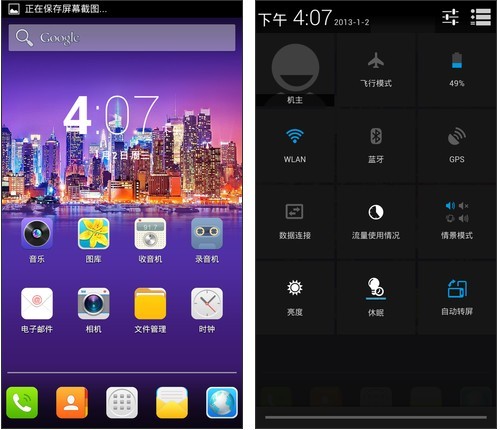 总体来说,由于神舟刚刚跨足手机行业(WWW.PC841.COM),其系统方面基本依然延续的是安卓原生系统样式,只是经过了一些简单的定制,系统上操作比较容易上手,只是缺乏自己的特色。不过目前已经网友将MIUI V5系统成功移植到神舟E50手机当中,因此系统方面大家也不用过于纠结。