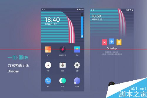 主屏界面采用了九宫格设计,这点令很多用户想到锤子,但是九宫格上方的Oneday集成了各类生活信息,表示一加目前正在重视生活服务对于用户的影响。