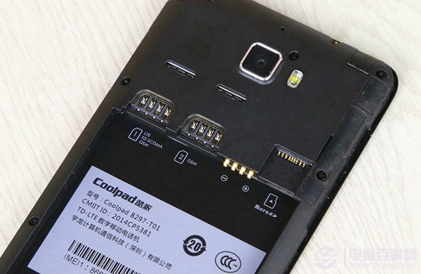 大神F1极速版背面配备了一颗800主摄像头和一个LED补光灯。机身下方保留了手机Logo标识“Coolpad”。
