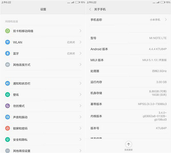 系统小结:小米Note运行的MIUI 6系统,作为国内安卓手机最受欢迎的系统,其不仅仅是功能强大、界面强大,还与其每周系统更新、众多的个性化功能和完全云服务分不开的,系统体验除了无法媲美苹果iOS系统,在国产安卓手机中,还是十分抢眼的。