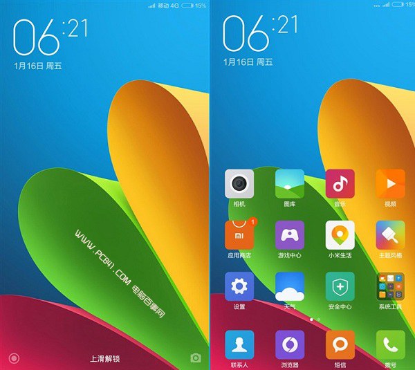 MIUI 6系统界面采用扁平化风格,这也是时下的主流,此外系统在状态栏与程序中融合过渡较为自然,结合5.7英寸大屏、可视的空间显得更大,界面看起来简洁大屏,不论是锁屏、主界面,看起来相比此前的小米手机,也显得更漂亮。