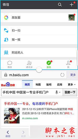 作为两款5.7英寸超大屏手机,为了提升屏幕利用率以及用户体验,vivo X6Plus和三星Galaxy S6 edge+均加入了“分屏”功能。在这一点上双方实现了统一。从体验上来说,它们的操作都颇为便捷,用户可以轻松实现一边聊微信、一边浏览网页这样“分屏多任务”操作,如上图所示,加之两款手机的运行内存(RAM)均达到了4GB,流畅度方面的体验同样令人满意。