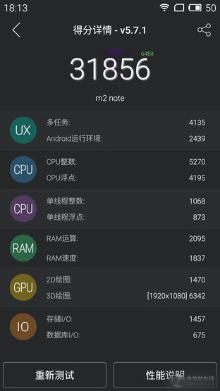 处理器方面,魅蓝Note 2也占到了晚一年发布的优势,采用了来自联发科的MT675364位处理器,它采用8颗Cortex-A53架构核心,主频为1.5GHz(魅蓝Note 2限制频率为1.3GHz),在GPU方面联发科MT6753采用了三核心的Mali-T720,其主频为450MHz,最高支持1600万像素摄像头,拥有双核ISP。