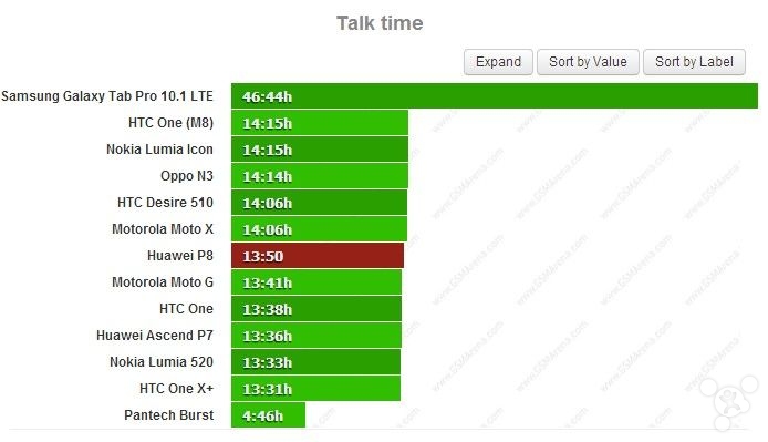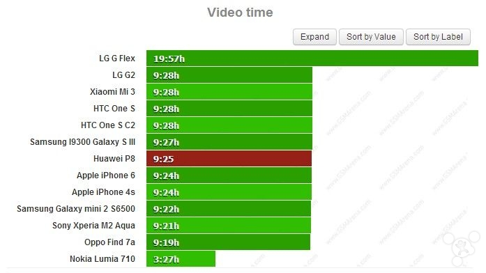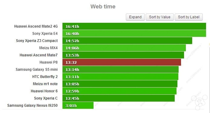 而在待机情况下,华为 P8 可以坚持 176 小时 28 分,综合起来使其得到了 64 小时的最终成绩,虽然对比同级产品整体上几乎没什么优势,但至少相较 P7 还是有了一定改善的。