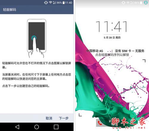 “轻敲解码”是LG UI上非常有名的一个功能了。有别于普通的数字解锁或九宫格解锁,轻敲解码可以让你在屏幕上通过不同区域、不同次数的点击来实现解锁功能,不仅保密性更强,操作反而还非常简单,可以说是除指纹解锁外综合性价比最高的一种解锁方式。