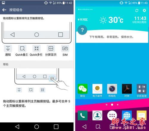 另一个就是LG提供的虚拟键定制功能。你可以在设置界面找到”按钮组合“这个项目,然后你就可以随意定制虚拟按键的顺序与数量。虽然这个功能看似不太起眼,但是对于使用频率非常高的虚拟按键来说,用得顺手还是非常重要的。