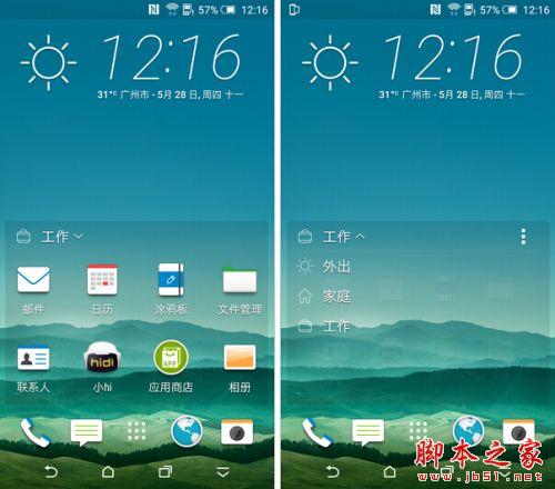 在Sense 7.0中,HTC也加入了多项特色功能。其中一项很有意思的功能,就是所谓的“Home桌面”。在Sense 7.0的主屏页面,HTC加入了一个多层级的应用摆放区域。这里的应用会依照你处于的不同状态,动态地进行排序。