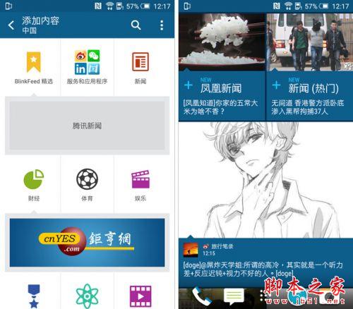 另外一个,就是Sense界面上大家熟悉的“BlinkFeed”了。“BlinkFeed”是HTC推出的一款信息流应用,你可以在里边订阅你常看的资讯网站,也可以添加你的社交账号查看社交信息,甚至它还能够基于你的位置推荐相应的吃喝玩乐信息,是非常齐全的一款个性化信息流服务。