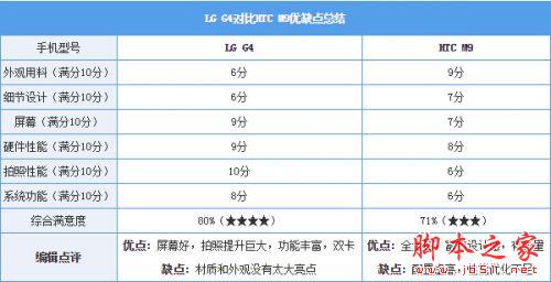 定价4000元左右的LG G4和HTC M9,其性能相差令人出乎意料,我只能这样说,它们各自所侧重的点实在太不一样。HTC M9认为材料是一款手机吸引人的精髓所在,LG G4则认为功能更为重要,所以导致了两款手机在第一印象和真实性能上的差异。笔者用一个表格来总结这两款手机的优缺点。