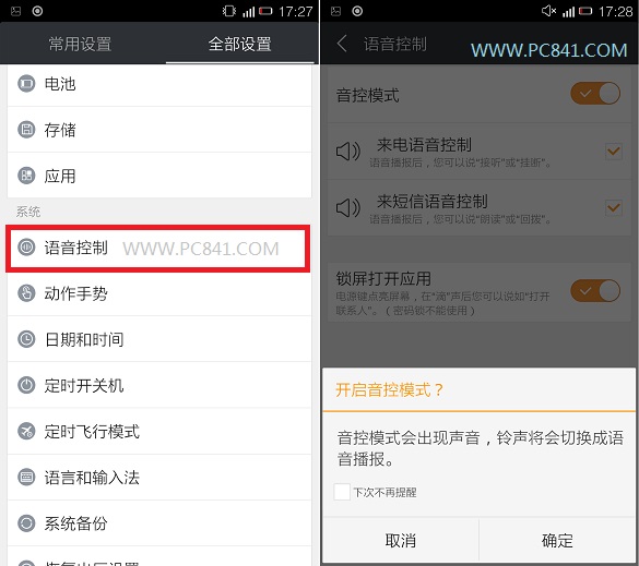 除了拨打电话与接听电话可以通过手势操作外,金立S5.5还支持语音控制功能,支持短信以及电话语音功能,开启此功能后可以自动播报接受到的短信,来电的时候,还会提示您是否接听,我们只要说“接听”即可接听电话,对于开车的人群来说,会很方便。