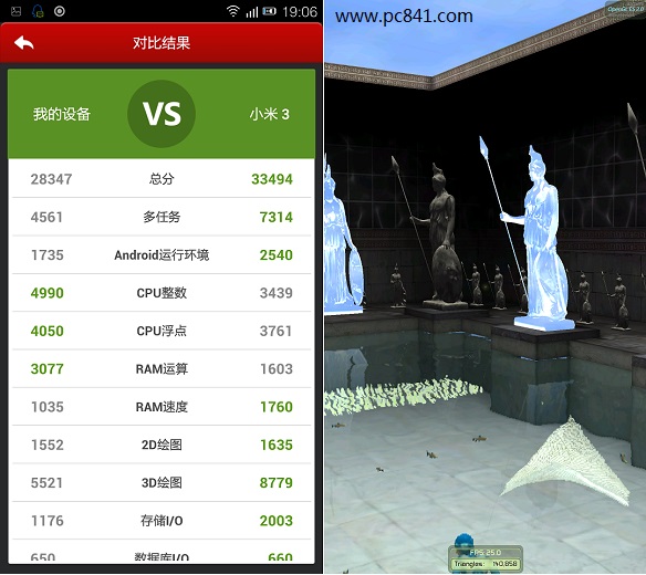 最后笔者还为大家对比了以下金立S5.5与小米3的性能对比,不过整体上,金立S5.5在性能上都比不上,搭载知名高通800旗舰平台的小米3,不过金立S5.5也已经具备了中高端性能水准,可以流畅各类中大型3D游戏。