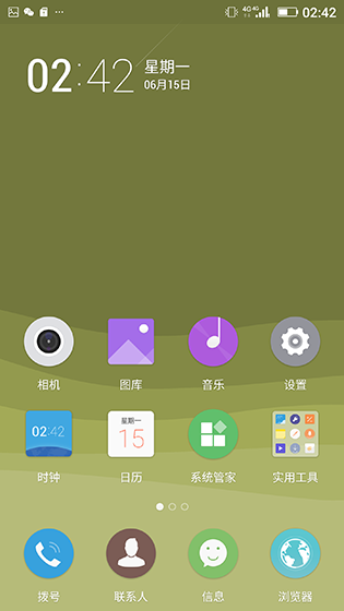金立E8的系统保持了简约的风格,系统里面的图片都是扁平化的图标设计,所有的应用都是放在桌面上,没有二级应用菜单,还有文件夹功能可以更方便对手机应用的管理。