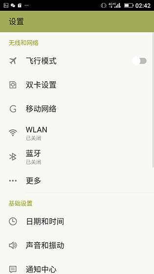 金立E8的设置界面分为常规设置和全部设置两部分,但设置界面变成了一个界面,高级设置成为了设置里面的其中一个选项,而不是另外一个独立的页面。