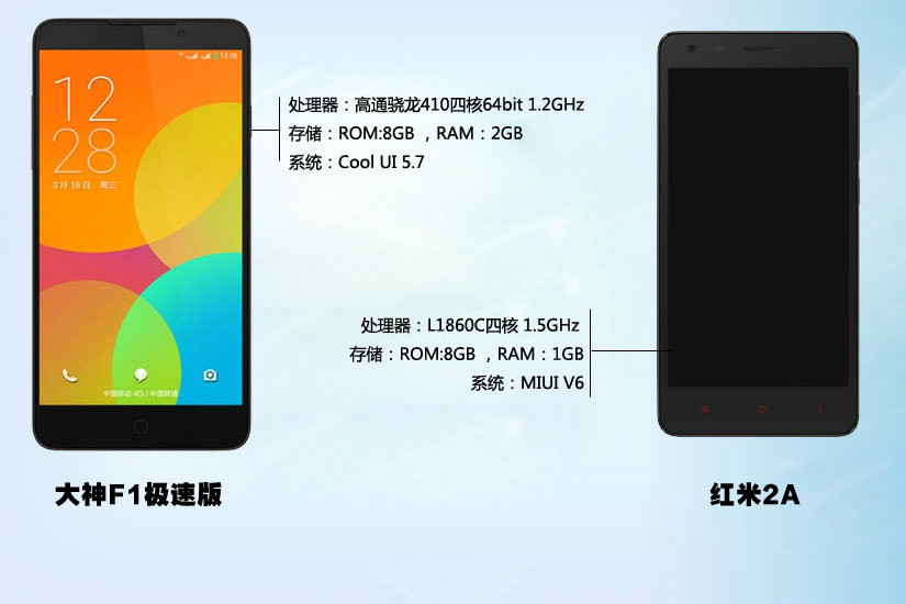499元买哪个好?酷派大神F1极速版和红米2A对比测评图文详解