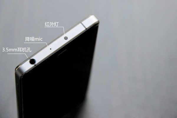 机身顶部,努比亚Z9机身顶部设计有3.5mm耳机孔,降噪mic以及红外线。