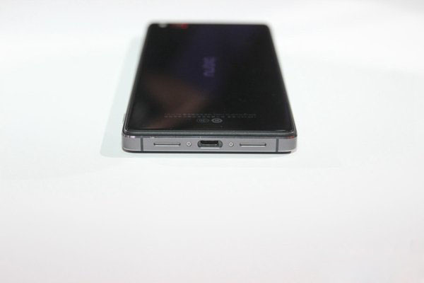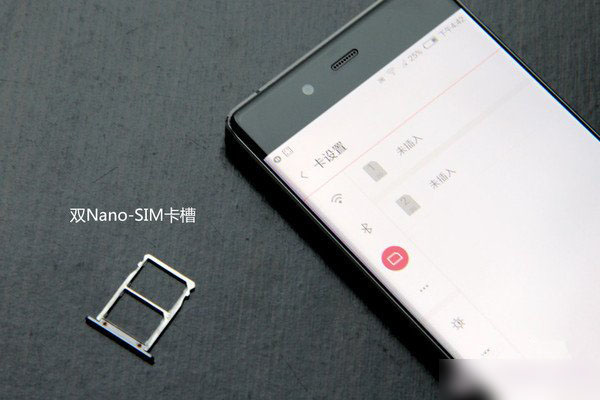 机身左侧,努比亚Z9机身左侧有一个SIM卡槽位,主要用卡针打开才行取出来,我们不难发现努比亚Z9采用了双卡设计,支持双卡双待双4G,而且两张都是小卡(Nano-SIM卡),如下图所示: