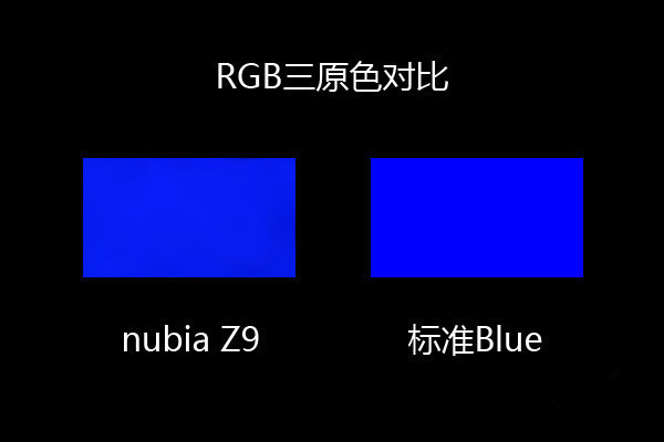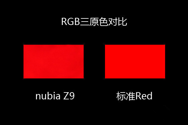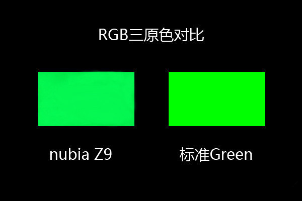 从上面的几组三原色对比图来看,nubia Z9的屏幕显示效果与标准色彩相当的接近,基本上没有色差。
