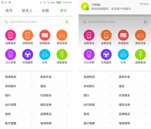 黄页服务,在此前的UI3.0笔者没有跟大家提到其实UI 3.0在联系人界面还加入了黄页功能,这给用户生活带来了不少便利服务,如下图所示: