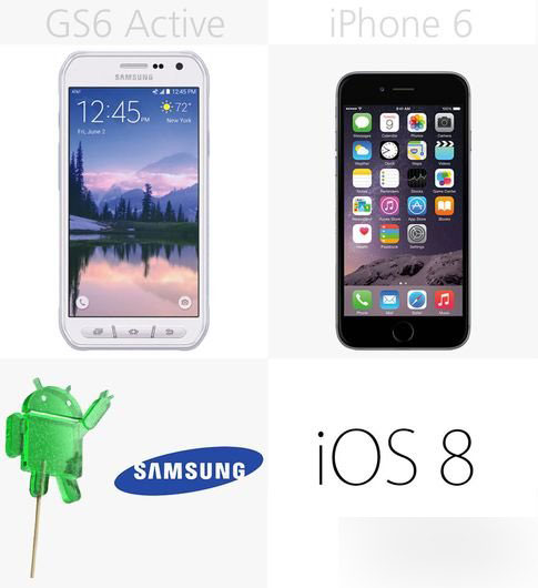 Galaxy S6 Active搭载基于Android 5.0.1的TouchWiz UI,而iPhone则是iOS 8.3系统。