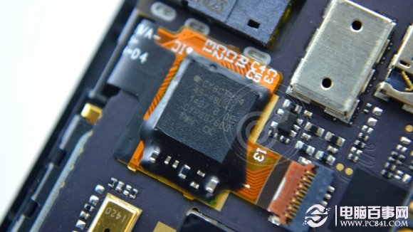 图为中兴V5 Max手机中框壳内部的触控控制芯片特写。