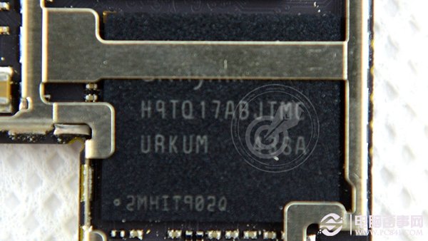 采用海力士提供的存储芯片H9TQ17ABJTMCUR,16GB eNAND (x8) / LPDDR3 16Gb(x32)
