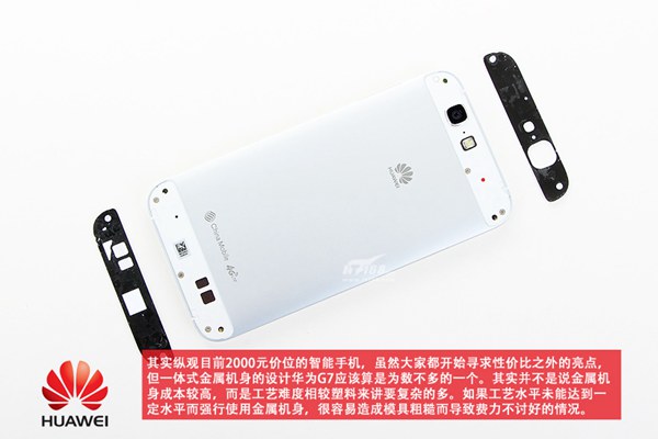 外观设计是华为G7一大卖点,华为G7采用了金属一体机身设计,对工艺要求相对较高。