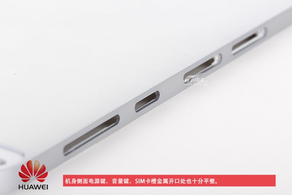 华为G7机身侧面有电源键、音量键以及SIM卡槽金属开口处也十分平整。