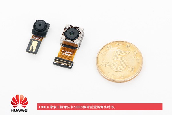图为拆卸下来的华为G7前置500万/后置1300万像素摄像头特写。