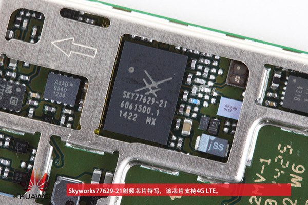 图为Skyworks 77629-21射频芯片特写,改芯片支持4G LET网络。