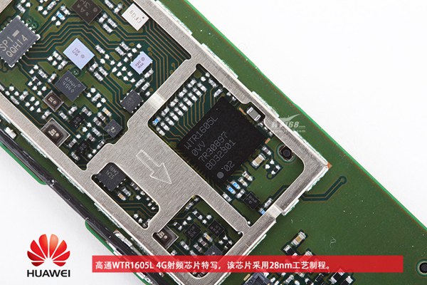 图为高通WTR1605L射频芯片特写,该芯片采用28nm工艺制程。