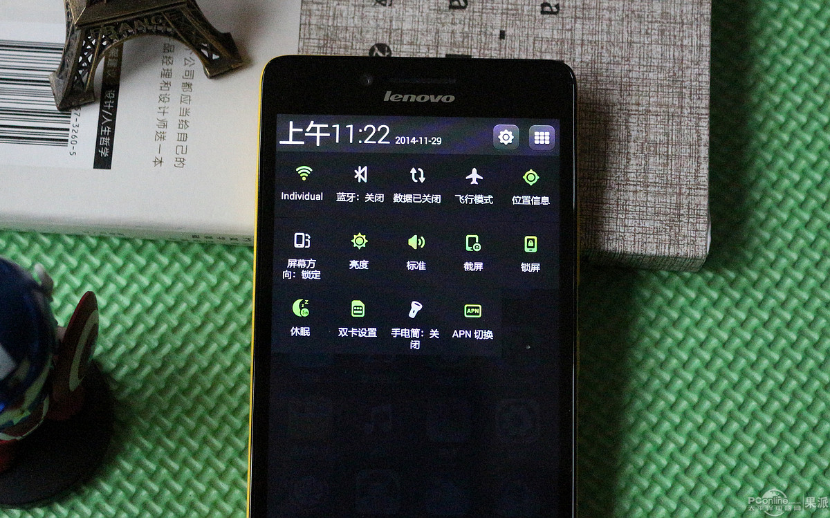 VIBE UI支持主界面任意位置下拉跳出下拉菜单,这点还是非常方便的。不过快捷开关图标有点偏小,美观度不高,有待改进。