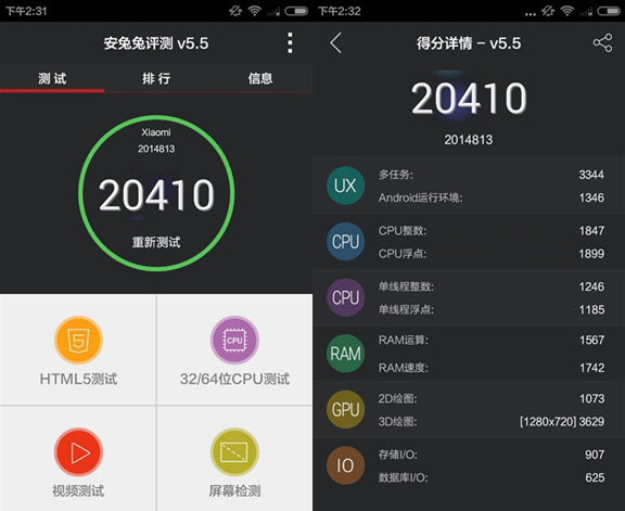 通过去年的“红米2详细评测”一文中,可以看到,红米2安兔兔跑分在2.0万分左右,性能上比较入门。