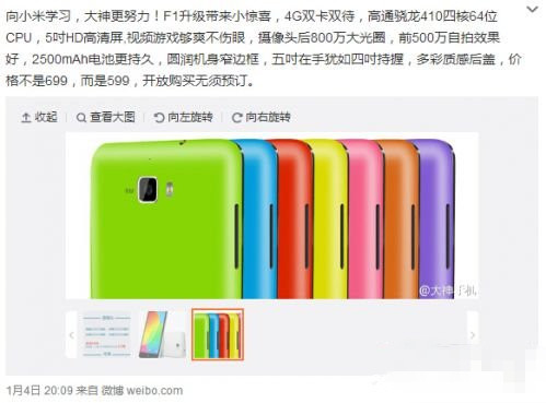 昨晚,酷派大神官方微博发消息称大神F1升级版大神F1 Plus正式发布,并说这是“向小米学习,大神更努力!F1升级带来小惊喜”。