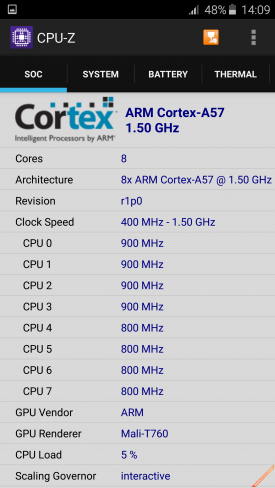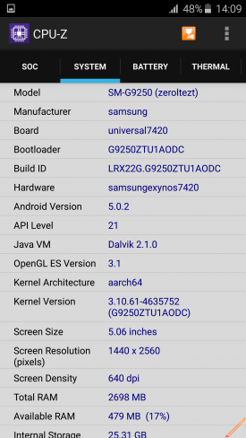 在性能方面S6 Edge内部的Exynos 7420移动处理器采用了14nm FinFET制程工艺,相比市场上那些20nm制程工艺的处理器来讲,更小的制程表示在芯片内部能够集成更多的晶体管,拥有更强的性能以及更低的功耗。此外,与这款CPU搭配的GPU型号为Mali-T760 MP8,频率达到了766MHz。而在内存方面,S6 Edge搭载了频率为1552MHz的LPDDR4内存,峰值带宽达到25.6GB/s。从纸面实力来看,这个配置在行业里是绝对的高端了,接下来,我们再通过跑分软件来看看,S6 Edge能否经得住考验。