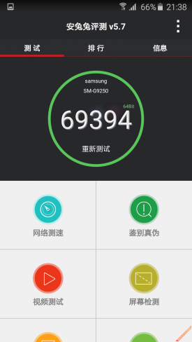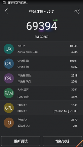 小结:通过安兔兔跑分以及NenaMark2的专业软件评测之后我们有理由认为这是目前手机行业性能最好的手机之一。一般来讲,安兔兔跑分成绩只要超过40000分,就可以列为旗舰行列,但是三星S6 Edge的出现,再次将安兔兔跑分提升到了一个新的高点,目测2015年下半年旗舰手机的性能,要是达不到60000+的分数,那么在发布会上,请不要说:“不服跑个分”。