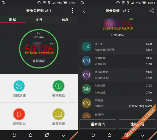 关于安兔兔的这个成绩,我们可以与之前搭载骁龙810手机的跑分成绩进行对比就可以一目了然了。骁龙810是高通屏幕目前最旗舰的处理器,我们拿之前评测的HTC One M9跑分进行对比,可以看出,在多任务处理/CPU以及RAM性能方面有着较大幅度的领先。